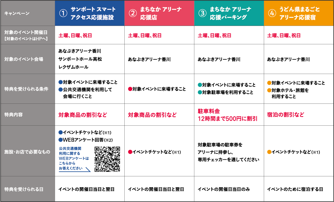 あなぶきアリーナ等で開催されるイベント来場者に特典を提供する「みんなでスマート割・応援キャンペーン」を実施中です。